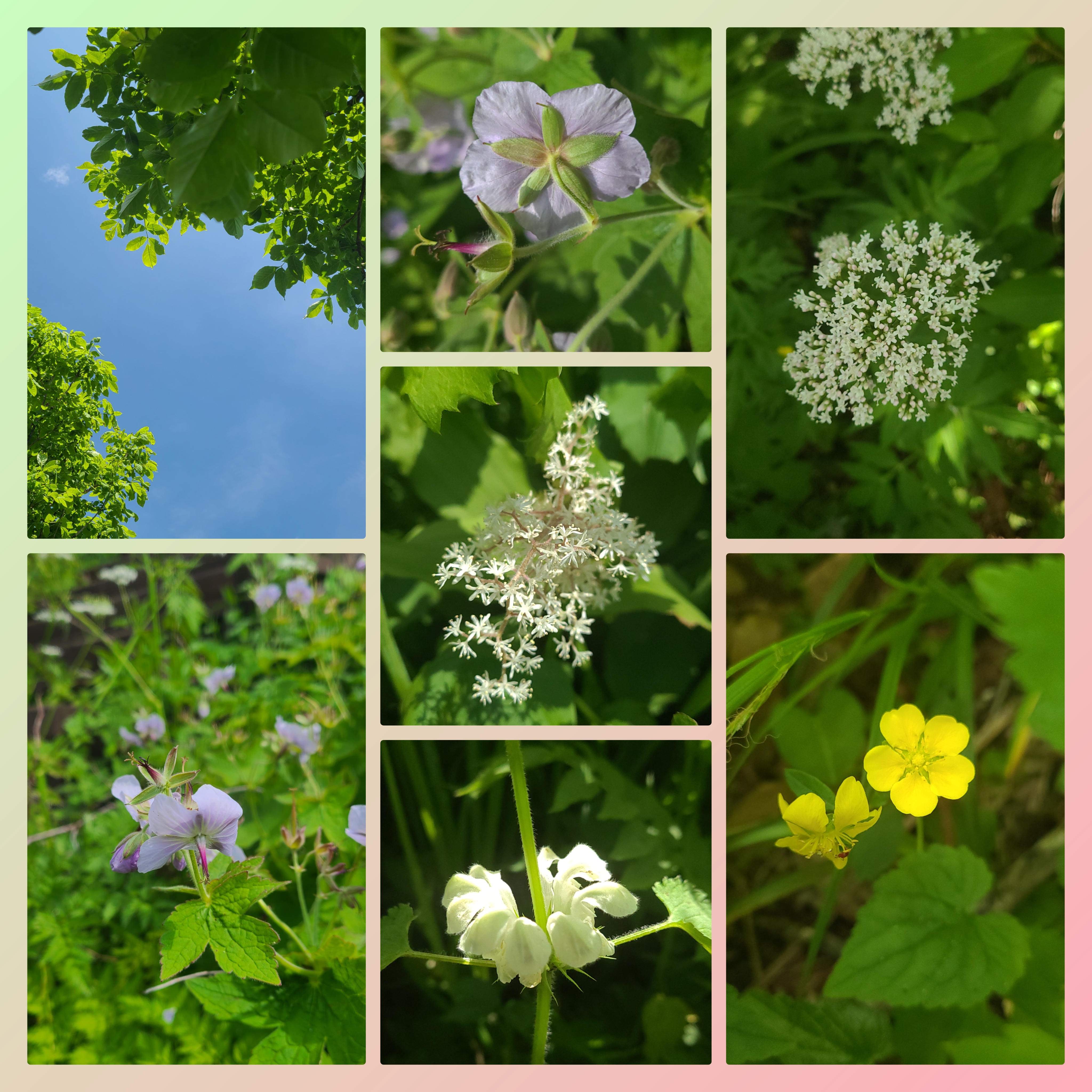 산목련(함박꽃), 요강나물, 병꽃나무, 벌깨덩굴, 노란장대, 미나리아재비, 광대수염, 쥐오줌풀, 풀솜대, 꽃쥐손이,