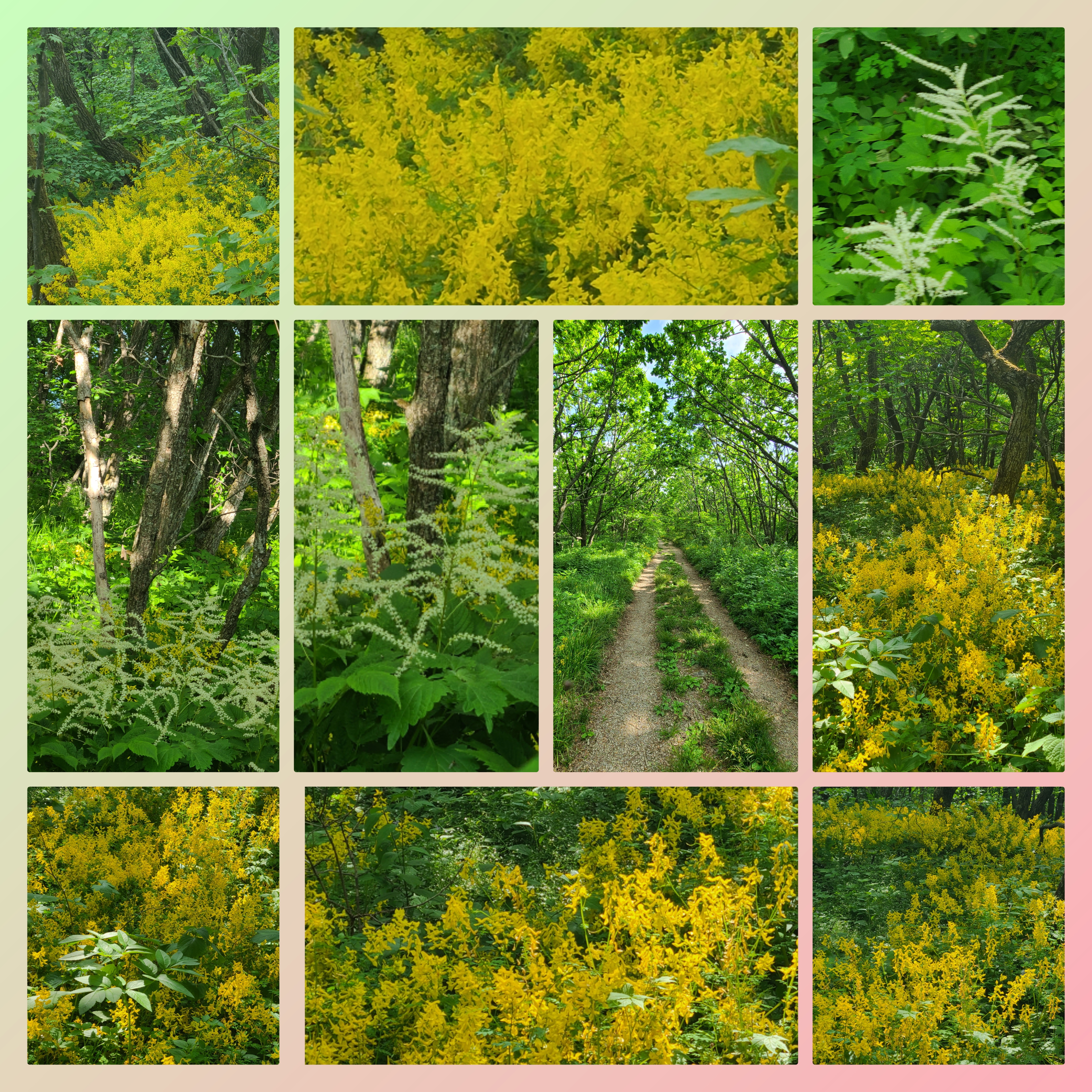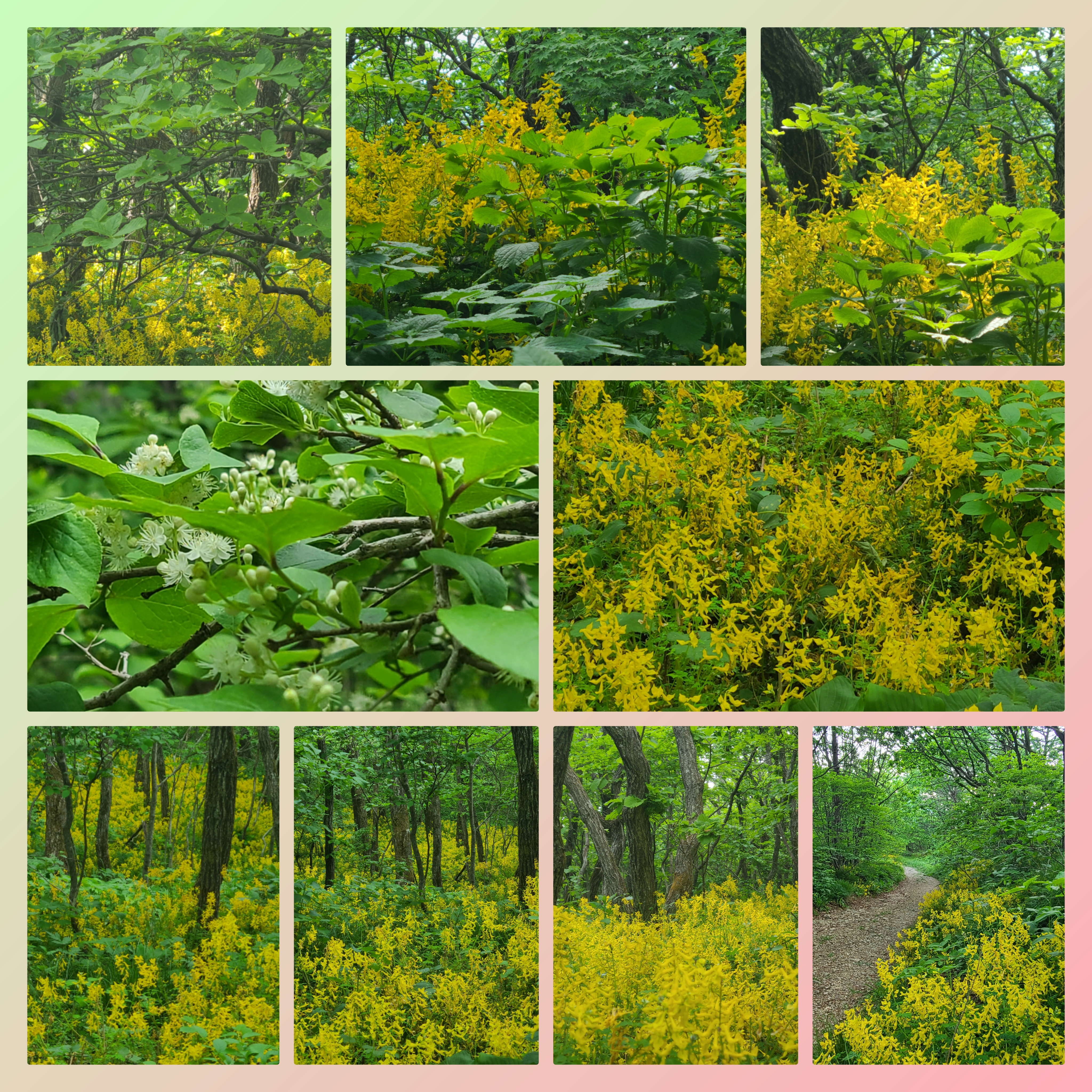 입구에서부터 산괴불주머니 노란 꽃들이 사열하여 우리를 안내했고, 그 숲길에서 환호를 터트립니다.