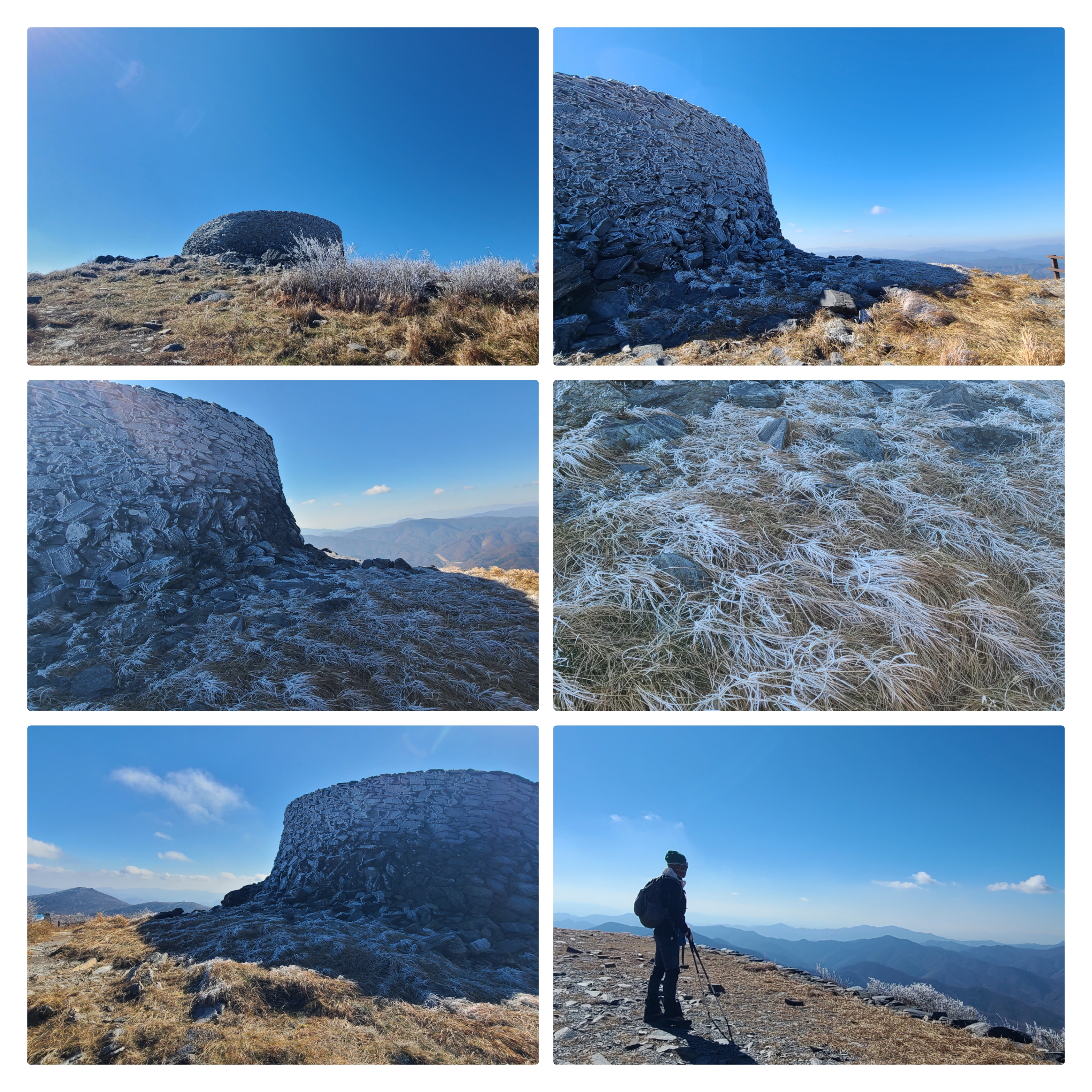 아, 탁트임 시원함 맑고 높은 하늘이 오늘의 산행 압권이다. 서리꽃이 거들며 대작을 만들어 내고 있는 중, 오늘의 나섬도 성공이다.